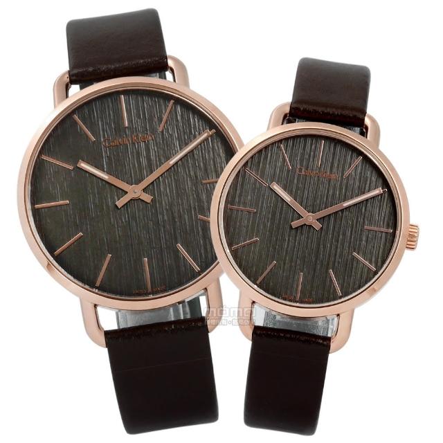 【Calvin Klein】EVEN 沉靜雅緻岩紋皮革手錶 灰x玫瑰金框x深褐 42mm+36mm(K7B216G3.K7B236G3)